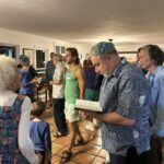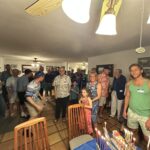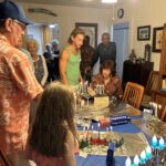 On Sunday, December 29, Sof celebrated Hanukkah with a festive party at the home of Don and Sandy Armstrong in Kailua. There was music, provided by the Ruach Band and some rousing vocals by Rabbi Ken Aronowitz. Mass quantities of latkes were consumed: enough to make the Coneheads proud! This was the social event of the shul year. Here are some pictures of folks having a good time.